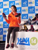[포토]YUNA14 시리즈 신발 들고 웃고있는 연아