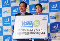 [포토]수익금 기부 증서 들고 포토타임 갖는 연아