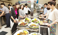 수협중앙회 직원들이 2일 17층 직원식당에서 우럭매운탕, 우럭구이 등을 배식하고 있다. 김영태 지도경제 대표이사등 임직원 600여명은 이날 [어업인돕기 조피볼락(우럭)시식행사]를 갖고 수산물 안전성 입증에 나섰다.