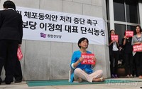 통합진보당 대표가 2일 오후 서울 여의도 국회 본청 앞에서 의원 체포동의안 처리 중단을 요구하며 단신투쟁이 들어갔다.