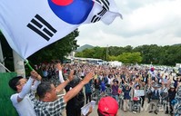 [포토]만세삼창으로 집회 마무리하는 애국단체