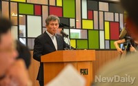 전경련이상법 개정안에 대한 경제단체 공동건의문 기자브리핑을22일 오전 서울 여의도 KT빌딩에서 개최했다.이날 전경련의 박찬호 전무가기자의 질문을 경청하고 있다.