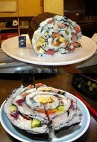 초슬림형 김밥에 이어 초대형 김밥이 등장했다. 최근 온라인 커뮤니티 게시판에는 [초대형 김밥]이란 제목으로 한 장의 사진이 올라왔다. 공개된 사진에는 케이크로 보일 정도로 어마어마한 크기의 김밥이 접시에 담겨 있다. 김밥에는 오이, 달걀, 당근, 회 등 다양한 재료가