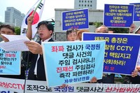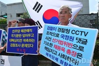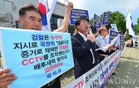 <국정원 댓글사건 증거인 경찰청 CCTV를 조작한 검찰규탄> 긴급 기자회견이 19일 오후 서울 서초구 대검찰청 앞에서 진행됐다.이날 기자회견에서 <자유청년연합>,<애국단체 참참참>,<교학연>,<엄마부대>,<국지