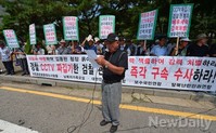 [대한민국 어버이연합]을 비롯한 보수단체회원들이19일 오전 서울 서초구 서울중앙지검 앞에서검찰의 국정원댓글 수사와 관련해증거로 제출한 CCTV를 짜집기 했다는 의혹을 제기하며채동욱 검찰 총장을 비롯한검찰 관계자의 처벌을 촉구하는 기자회견을 가졌다.