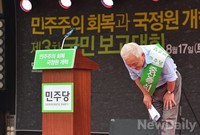 민주당은17일 오후 서울광장에서국민보고대회를 열고<국정원 정치공작 대선개입 규탄 제8차 국민촛불대회>에 합류했다.참여연대와 한국진보연대 등280여개 시민사회단체로 구성된[국정원 정치공작 대선개입 시국회의]가 주최한이날 촛불집회에는주최측 추산 4만명, 경찰 추