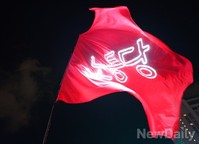[포토]촛불집회에서 펄럭이는 '노동당' 깃발
