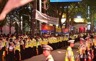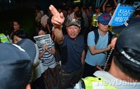 [포토]경찰에게 항의하는 촛불시위 시위자들
