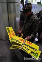 [포토]부러진 피켓을 챙겨들고 안타깝게 바라보고 있는 협회회원