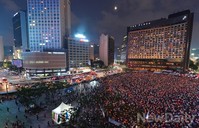 [포토]달 뜬 광장에 모인 촛불집회 참가자들