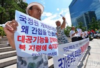 ,, 등 보수단체들이16일 오후 서울 중구 태평로 파이낸스빌딩 앞에서 기자회견을 가졌다.이날 기자회견을 통해[불법천막농성]을 벌이고 있는 민주당 등이[국정원 해체]를 주장하는 것을 강하게 비판했다.