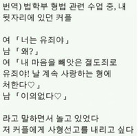 법대생 연애방법이 네티즌들의 호기심을 자극했다. 최근 각종 온라인 커뮤니티 게시판에는 [법대생 연애방법]이라는 제목으로 게시물이 올라왔다. 공개된 게시물에는 법학부 수업 중 생긴 재미있는 에피소드가 담겨 있다. 게시자는 “법학부 형법 관련 수업 중 뒷자리 커플의 대화를