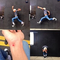 지드래곤이 공중부양하다 생긴 상처를 공개했다. 빅뱅 지드래곤은 9일 오전 자신의 트위터에 “폴”, “짝”, “뛰다 피봤다”, “혼자가 아니야”라는 글과 함께 4장의 사진을 올렸다. 공개된 2장의 사진 속 지드래곤은 청바지에 반소매 티셔츠를 입고 담 앞에서 폴짝 뛰어오른