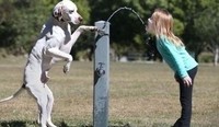 물 주는 개, 소녀 위해 펌프 꾹~ “주인님은 입만 대세요”