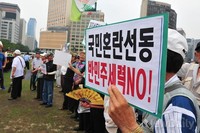 7일 오후 서울시청 앞 광장에서 회원 150여 명이 [민주당 천막농성]을비난하는 집회를 가졌다.