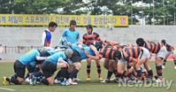 <제24회 대통령기 전국 종별 럭비 선수권대회> 고등부 경기가 전남 강진 럭비전용구장에서 열리고 있다.23일 오전 <양정고>와 <부산체고>의 경기에서 양정고가 [26:3]으로 부산체고를 물리치고 준결승에 진출했다.준결승은 오는 25일 오