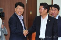 [포토]국조특위 첫 전체회의에서 인사 나누는 '권성동-정청래'