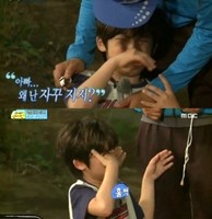 배우 성동일의 아들 성준이 거듭된 가위바위보 패배에 눈물을 흘렸다. 지난 14일 오후 방송된 (이하 아빠 어디가)는 경남 거창군 북상면 월성계곡으로 캠핑을 떠난 다섯 아빠와 아이들이 모닥불을 피워놓고 게임을 하는 모습이 그려졌다. 이날 아빠와 아이들은 노래를 부르며