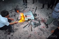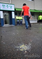12일 오후 서울 영등포구 민주당 중앙당사에서 을 비롯한 6개의 보수시민단체 회원 100 여명이 집결해 민주당 [홍익표]의원의 [박근혜]대통령 [귀태]발언을 규탄하는 집회를 가졌다. 이날 집회에서 보수시민단체 회원들은 [홍익표]의원의 사진을 부착한 인형을 불태우는 과정