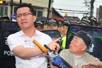 [포토]흥분한 경찰과 어버이연합 (민주당 귀태 발언 규탄 집회)
