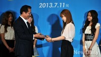 [포토]'리더니까 대표로!' 위촉패 전달 받는 에이핑크 박초롱