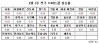 전국 아파트값이 -0.03%를 기록해 6주 연속 하락했다. 아파트값이 지속적으로 떨어지면서 다시 한번 장기적인 침체에 빠져드는것이 아닌가하는 우려를 낳고 있다.부동산 정보업체 가 5일 발표한 조사결과에 따르면 전국 아파트값 상승률은서울시 -0.09%, 경기도 -0.03
