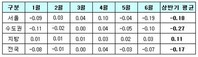 부동산포털 (www.DrApt.com)는 2일 2013년 상반기 아파트 시장을 정리한 결과를 발표했다.우선 올 상반기 매매가변동률은 서울 -0.18%신도시-0.35%경기 -0.39%인천 -0.35%수도권 -0.27% 지방은 0.11% 전국 -0.17%로 지방을 제외한