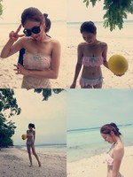 배우 홍수아가 필리핀에서 비키니 자태를 드러냈다. 홍수아는 24일 자신의 트위터에 “굿모닝. 필리핀의 아침이 밝았어요. 수진이. 오늘도 힘차게 ‘망고트리’ 파이팅”이라는 글과 함께 여러 장의 사진을 게재했다. 공개된 사진 속 홍수아는 프릴이 달린 귀여운 튜브톱 비키니