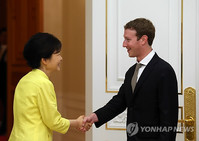 박근혜 대통령이 페이스북 공동창업자이자 CEO(최고경영자)인 마크 저커버그를 18일 청와대에서 맞았다. 이날 저커버그와의 회동은 지난 4월 마이크로소프트 창업자인빌 게이츠 테라파워 회장과 구글 CEO인 래리 페이지 등창조경제 선구자들과의 회동 제 3탄이다. 청와대 관계