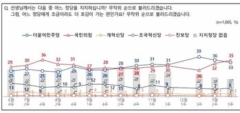 국민의힘 정당 지지율은 35%, 더불어민주당 정당 지지율은 33%라는 여론조사 결과가 16일 나왔다. 앞선 다른 여론조사와 같이 윤석열 대통령 비상계엄 선포 후 양당 지지율이 보합세인 것으로 집계됐다.엠브레인퍼블릭·케이스탯리서치·코리아리서치·한국리서치가 13~15일 만