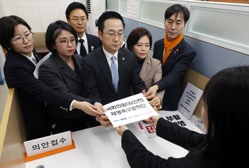 더불어민주당 등 야6당이 윤석열 대통령 관저 사수 집회를 벌이며 자신들을 '백골단'이라고 명명한 '반공청년단'의 기자회견을 주선한 김민전 국민의힘 의원에 대한 제명촉구결의안을 제출했다.10일 오후 야6당은 국회 의사과에 김 의원 제명 촉구 결의안을 제출했다. 이 자리에