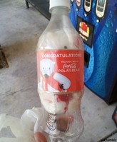 난감한 사은품이 네티즌의 실소를 자아냈다. 최근 한 온라인 커뮤니티 게시판에는 [난감한 사은품]이라는 제목으로 한 장의 사진이 올라왔다. 공개된 사진에는 콜라 플라스틱 페트병 안에 넣어져 이는 북극곰 인형의 모습이 담겨 있다. 게시자는 “작은 페트병 안에 어떻게 커다란