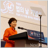 박근혜 대통령은 25일 “국민의 행복과 안전을 위해 반드시 법치가 바로 서는 나라를 만들겠다”고 밝혔다. 박 대통령은 이날 서초동 대법원 강당에서 열린 [제50회 법의 날] 기념식에 참석해 “법은 사회적 약자에게 따뜻한 보호막이 돼야 한다. 법대로 하자는 이야기가