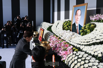 고(故) 김수한 전 국회의장의 영결식이 3일 오전 국회 정현관 앞에서 엄수됐다.장의위원장을 맡은 우원식 국회의장은 영결사에서 "비상계엄과 여객기 참사, 그리고 어려운 경제 상황 속에서 우리 국회와 국민은 무겁고 슬픈 마음으로 지난 한 해를 보내고 새해를 맞이했다"며 "