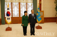 박근혜 대통령은 22일 오후 청와대에서 현오석 기획재정부장관과 남재준 국가정보원장, 신제윤 금융위원장에게 임명장을 수여했다. 새 정부 국방장관으로 유임된 김관진 국방부장관도 ‘부름’을 받았다. 박 대통령은 김 장관과 사진촬영을 함께하며 “안보에 최선을 다해달라”고 당부