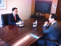 탈북민 출신인 새누리당 조명철 의원이 20일 롯데그룹의 이인원 롯데그룹정책본부 부회장에 "사회적 취약계층인 탈북민에 대한 취업확대에 롯데가 앞장서달라"고 했다.