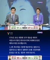 제 18대 대통령 선거에서 민주통합당 문재인 후보의 당선을 점쳤던 YTN이 사과방송을 내보냈다.YTN은 19일 제 18대 대선 예측보도를 진행하면서 민주통합당 문재인 후보가 49.7~53.5%를, 새누리당 박근혜 후보가 46.1~49.9% 득표율을 보인다고 발표했다.