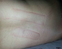 ‘등이 아팠던 이유’ 게시물 사진이 화제다.최근 한 온라인 커뮤니티 게시판에는 ‘등이 아팠던 이유’라는 제목으로 게시물이 게재됐다.사진에는 한 남성의 등이 찍혀있다. 상의를 탈의하고 잔 이 남성의 등에는 2개의 리모콘 자국이