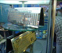 금 은 키보드가 네티즌들의 시선을 사로잡고 있다. 최근 각종 온라인 커뮤니티 게시판에는 '금 은 키보드'라는 제목의 사진이 게재됐다. 이는 각각 금과 은으로 만들어진 키보드가 전시된 것을 촬영한 것.사진 속 '금 은 키보드'는 번쩍번쩍 빛을 내며 가게 중앙에 전시돼 있