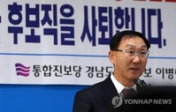 경남지사 보궐선거에 나섰던 통합진보당 이병하 후보가 13일 결국 사퇴했다.이에 따라 이번 경남지사 선거도 새누리당 홍준표 후보와 무소속 권영길 후보 두 사람의 결전으로 최종 구성됐다.이병하 후보는 이날 경남도청 프레스센터에서 기자회견을 열고 다음과 같이 말했다."진보적