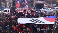 박근혜 새누리당 대선 후보가 찾은 경북 포항시, 그의 유세장 앞에 태극기가 휘날렸다.