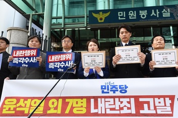 윤석열 대통령의 비상계엄 선포와 관련해 더불어민주당이 윤 대통령, 김용현 전 국방부 장관 등 8명을 '내란죄'로 경찰에 고발했다.민주당 의원들은 5일 오후 1시 30분쯤 서울 서대문구 경찰청 국가수사본부에 윤 대통령과 김 장관을 포함해 이상민 행정안전부 방관, 박안수
