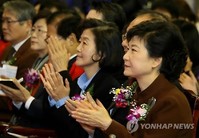 박근혜 앞에 선 안철수 부인 "남편이 승리한다"