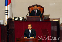 서울평화상 수상 차 방한 중인 반기문 유엔 사무총장이 30일 취임 이후 처음으로 한 국회 연설에서 한 말이다. 반기문 총장은 이날 오전 11시 국회 본회의장에서 약 30분간 ‘유엔과 한국: 함께 이루는 인류의 꿈’이라는 주제로 연설했다.