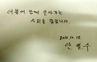 안철수 대통령 후보의 구멍 난 꿈, 꿈?제 나라 글을 베끼지도 못하는 대통령후보안철수 대통령 후보가 의외의 허점을 보여줬다. 참, 재미있다고 해야 할까, 어처구니 없다고 해야 할까, 불안하다고 해야 할까, 장난스럽다고나 해야 할까, 아니면 세종대왕을 들먹이면서 화를 내