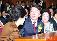 [포토] 김대중 기념사업 토론회에서 만나 '박근혜-안철수' 후보