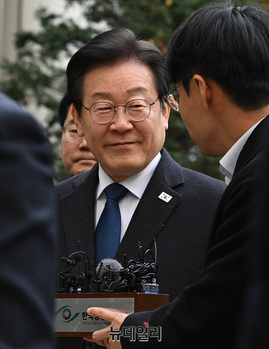 이재명 더불어민주당 대표가 25일 오후 서울 서초구 서울중앙지법에서 열린 '위증교사' 관련 1심 선고공판에 출석하고 있다. (사진=공동취재단)