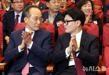 박찬대 더불어민주당 원내대표와 황운하 조국혁신당 원내대표가 14일 오후 국회에서 열린 본회의에서 대화를 나누고 있다.