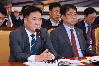박상우 국토교통부장관이 13일 오전 국회에서 열린 국토교통위원회 전체회의에서 의원들의 질문에 답하고 있다.