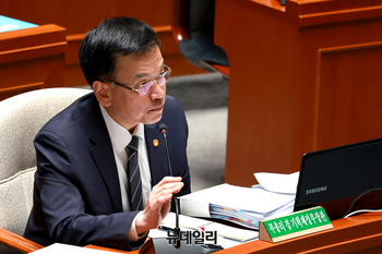 최상목 부총리 겸 기획재정부 장관이 11일 오전 국회에서 열린 예산결산특별위원회 전체회의에서 의원질의에 답하고 있다.
